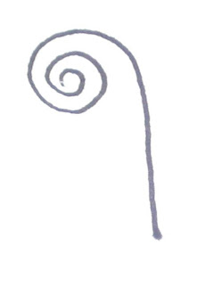 Take a strip of paper in the colour of your choice (not brown though, we're done with that) and you're going to wind it around an item. Here's where you need the toothpick, needle and pen. I use the toothpick 90% of the time because it's easier but the needle gives a tighter curl in the centre so sometimes's it's useful, especially if you're working on a small curl. I read once that you're suppose to slightly wet the end of your paper to help turn, I hope it doesn't gross you out to learn that I actually just use my tongue on the end a little. Press the end around the toothpick to give it a little bend and then wind around a couple times. The amount of times you wind depends on the size of the curl. Once you take the toothpick out you have a curl that stops pretty suddenly, the tail that you didn't wind has no curl at all, like in the diagram below.