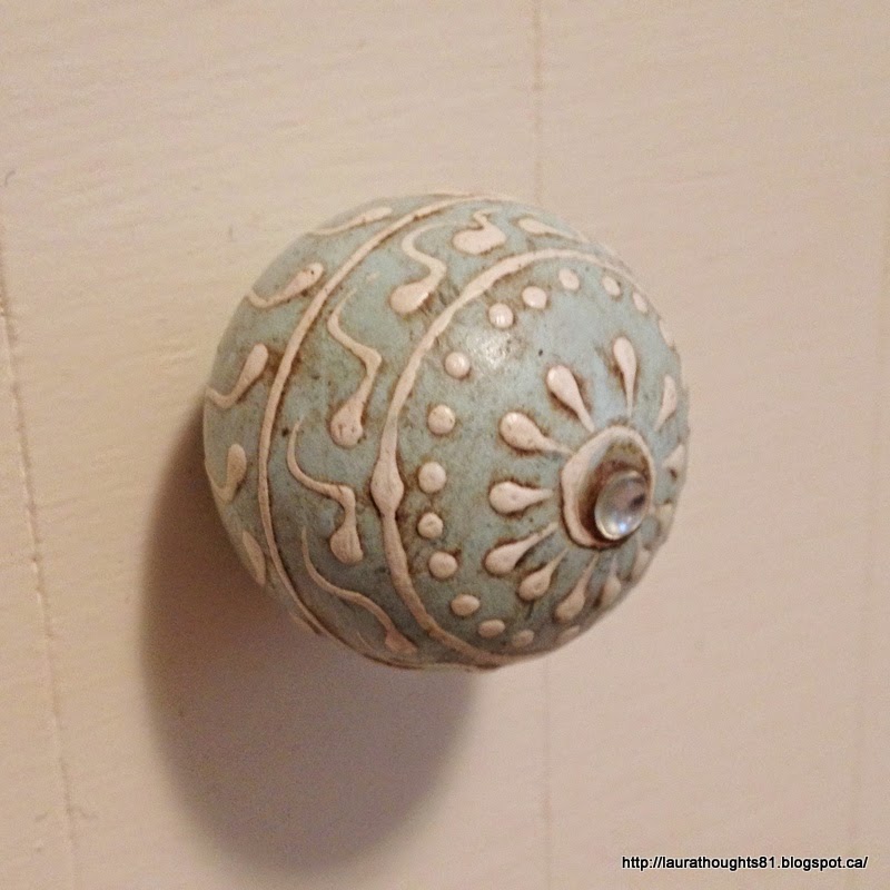 I took the legs off, sanded them and stained them Espresso. I lined the drawers up and painted them heirloom white and replaced those awful ugly knobs. I had picked up new nobs 3 years ago and couldn't wait to reattach them.